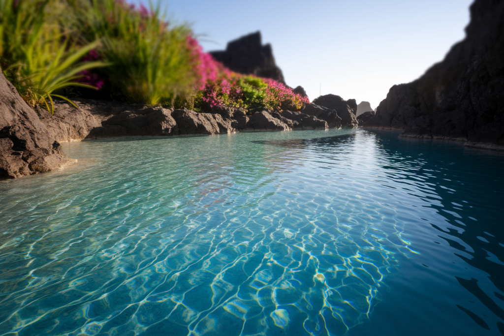 Résultat ? Des piscines d’eau salée cristalline, naturellement filtrée, dans un décor de roches noires sculptées par les éléments. L’eau y est généralement plus calme qu’en pleine mer, ce qui rend la baignade accessible même aux familles avec enfants.